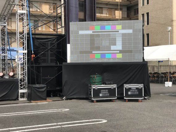 新居浜市のショッピングモール駐車場にて仮設ステージ、LED台の設営をしました。